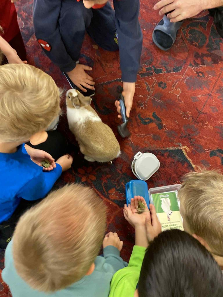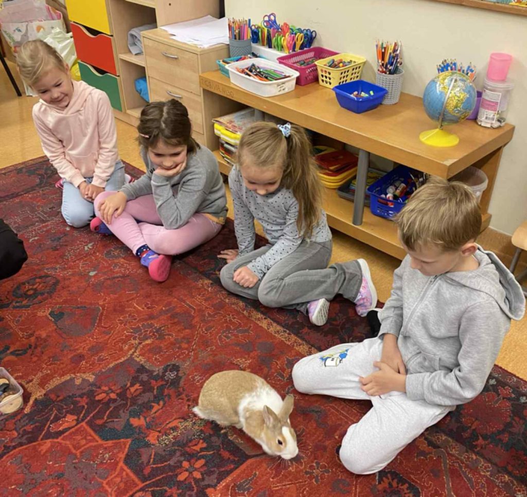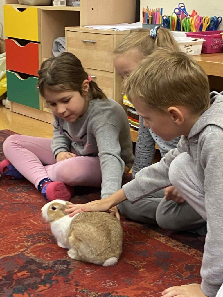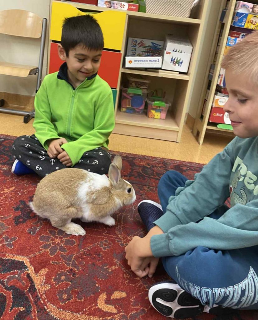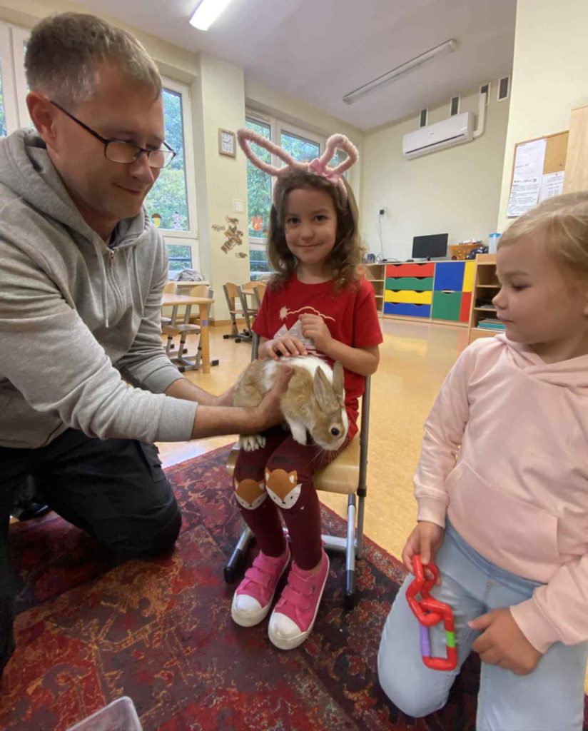 Dzieci były przeszczęśliwe mogąc oglądać, karmić i głaskać królika. Każdy mógł poczuć jak mięciutką i gładką sierść ma to niesamowite zwierzątko. Przedszkolaki dowiedziały się jak należy opiekować się króliczkami.