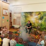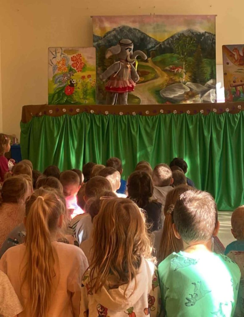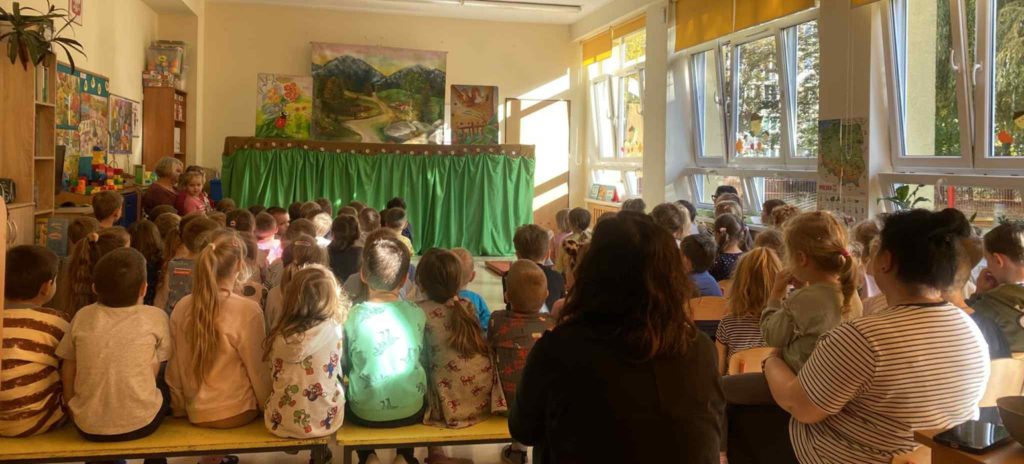 Dzieci z całego przedszkola miały możliwość obejrzenia spektaklu w wykonaniu aktorów Teatru Na Ostrowie. Przedstawienie zostało zaprezentowane w postaci Bajkowozu, który jest mobilną i niezależną technicznie sceną teatralną bazującą na francuskim pierwowzorze Teatru Guignol’a.