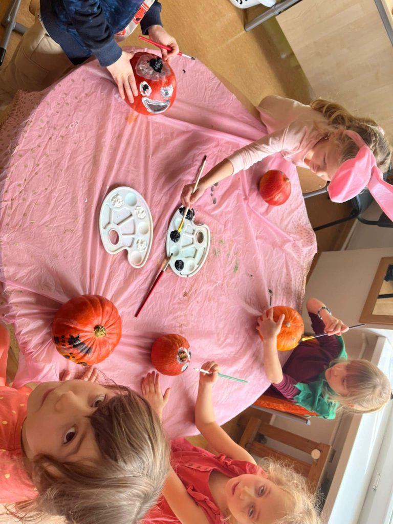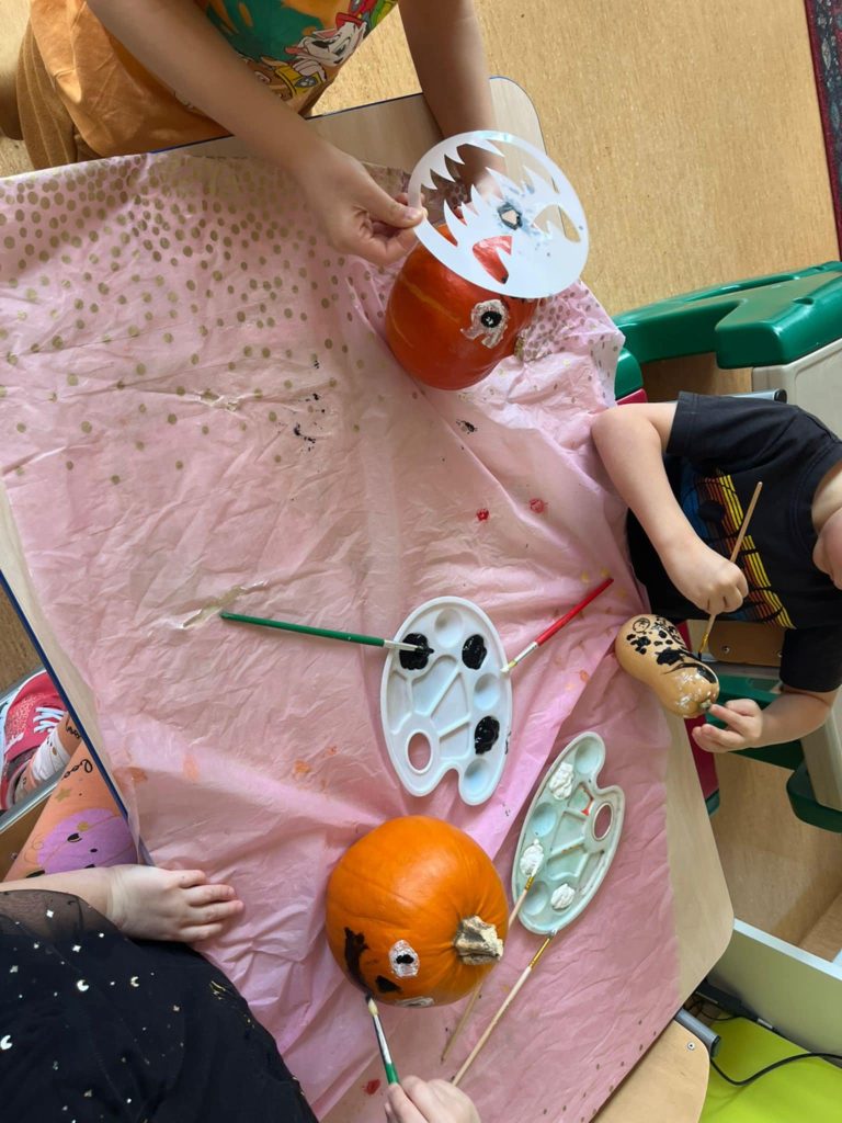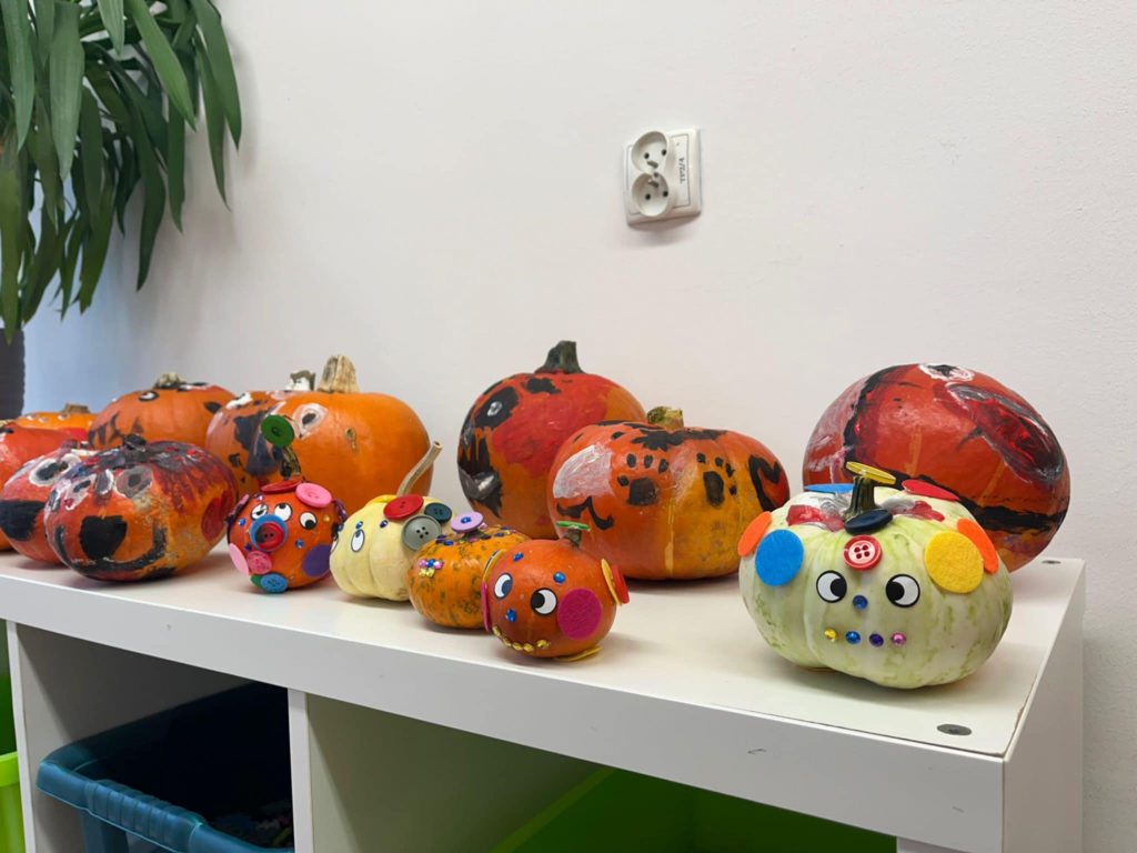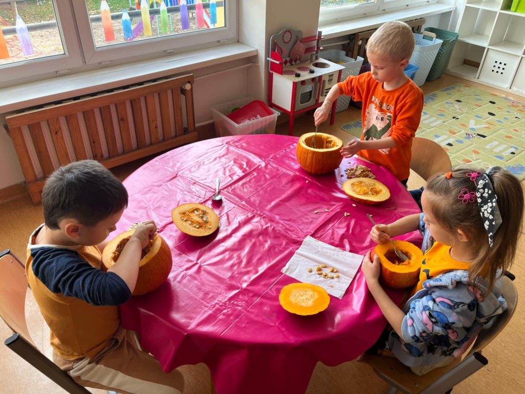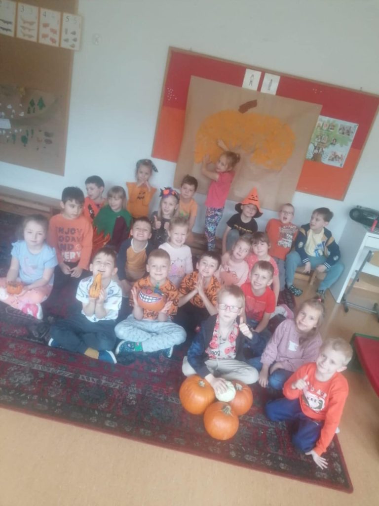 Dzieci przyniosły do przedszkola dynie i ubrały się na kolor pomarańczowy. Wzięliśmy udział w licznych zabawach z udziałem dyni: m.in slalom dyniowy, dyniowe zawody, skoki przez dynię. Dzieci wykonały również piękne prace plastyczne. Ten dzień był pełen wrażeń i radości.