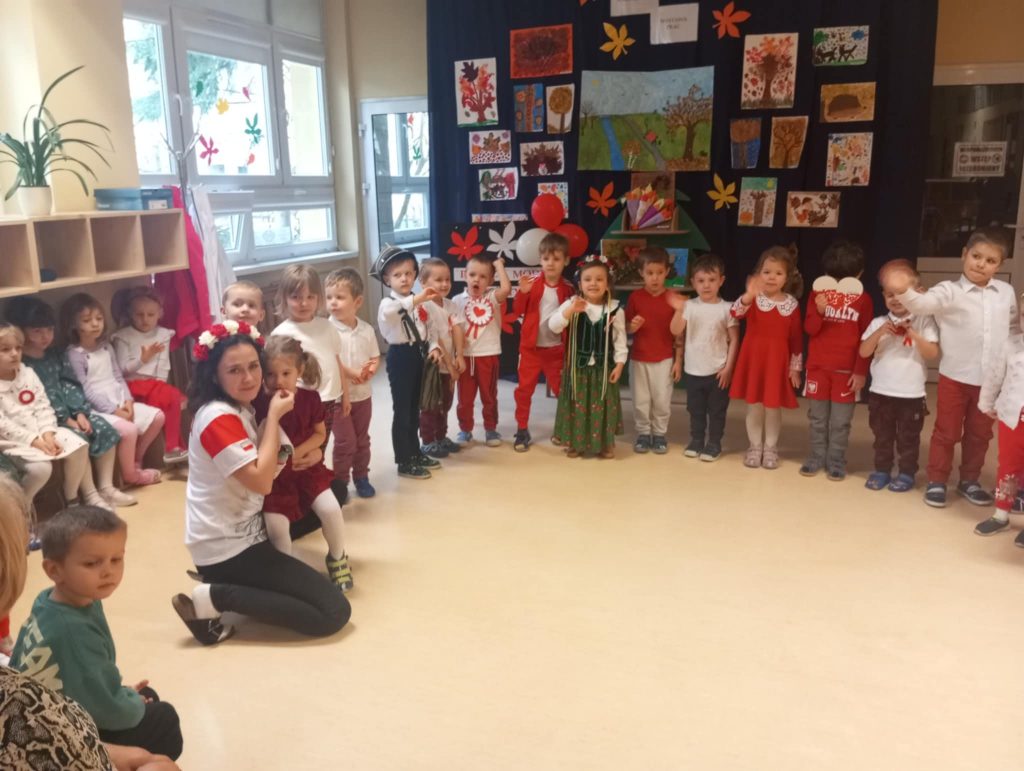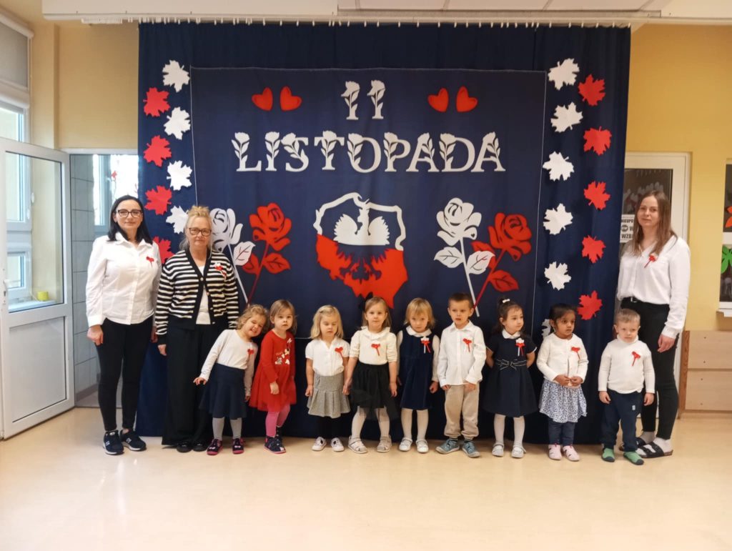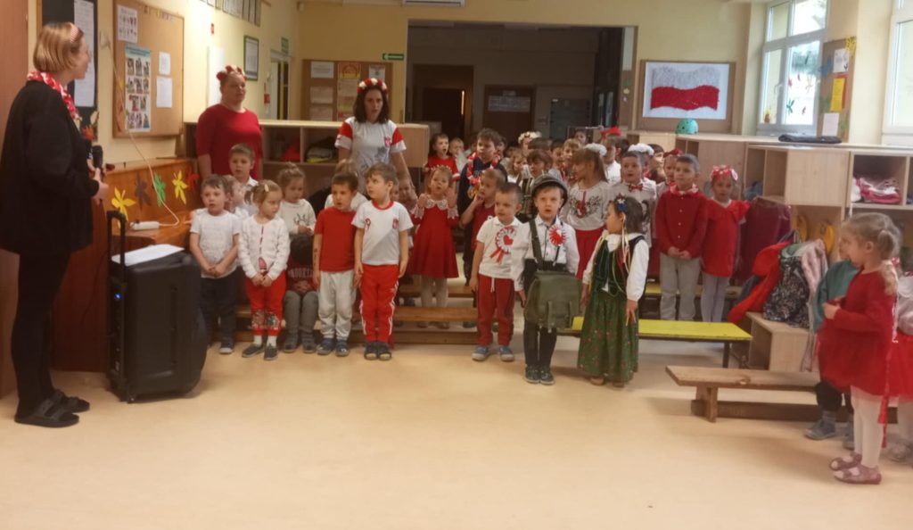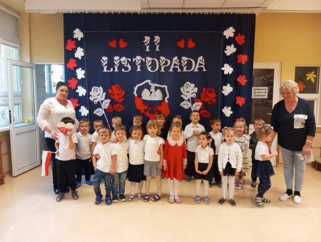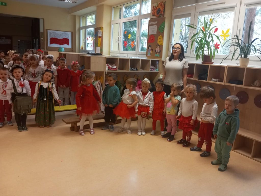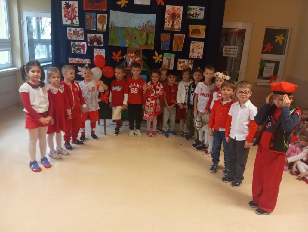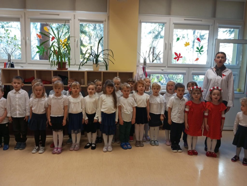 Dnia 07 listopada w Naszym Przedszkolu odbył się uroczysty apel z okazji Święta Odzyskania Niepodległości przez Polskę. Był to wyraz szacunku złożony przez nasze przedszkolaki dla minionych pokoleń walczących o wolną Ojczyznę. Wspólnie zgromadziliśmy się w holu, gdzie odśpiewaliśmy Hymn Polski
