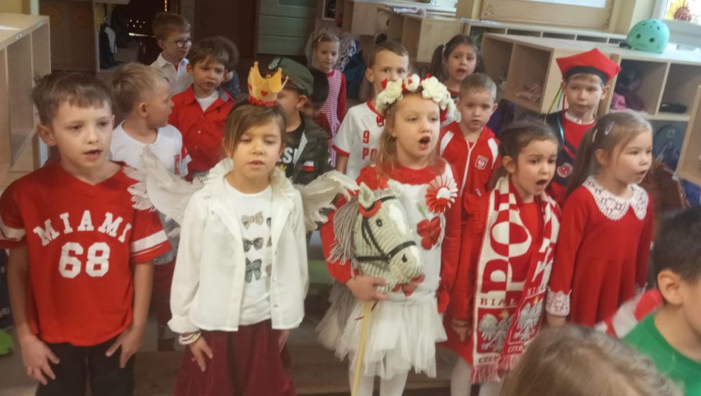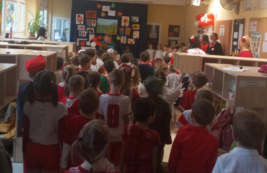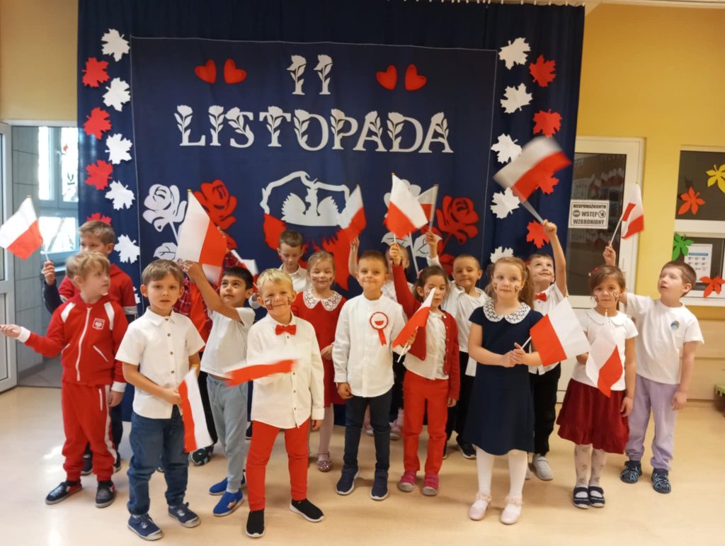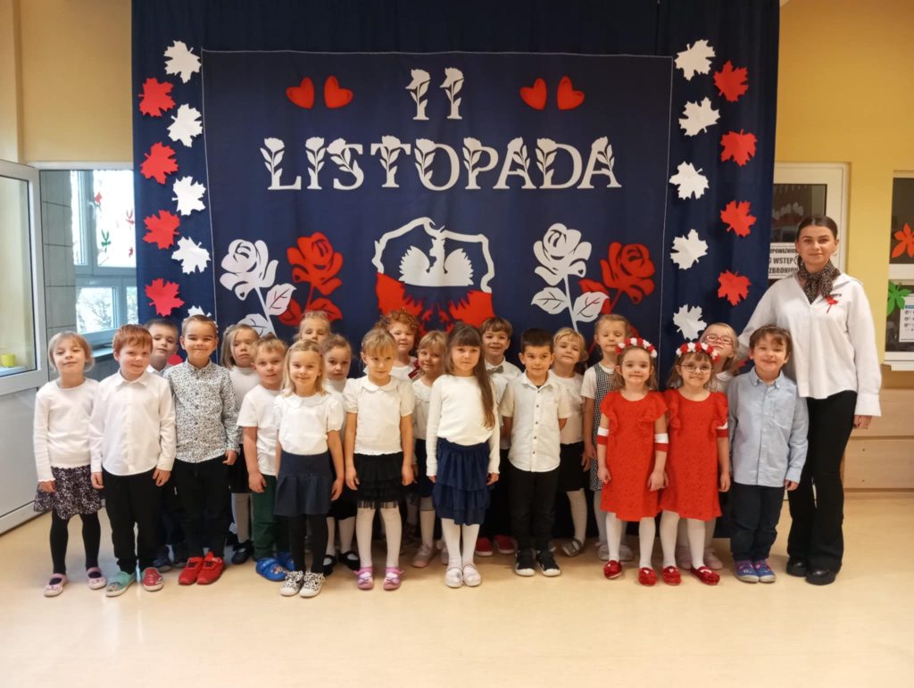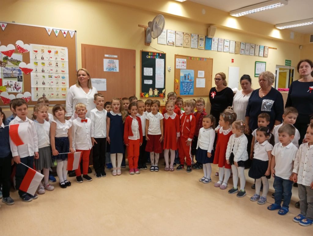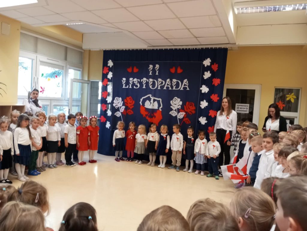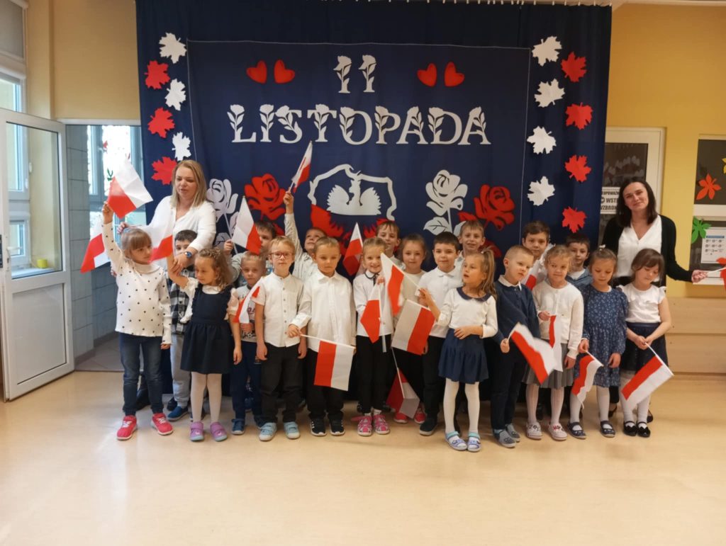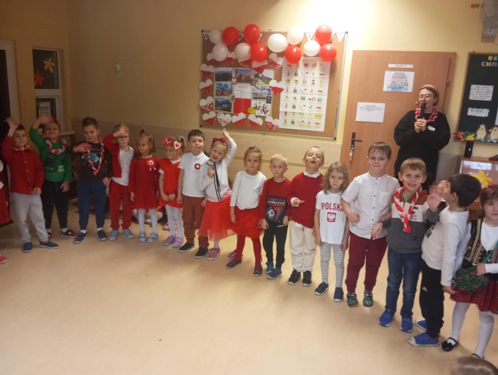 Dnia 07 listopada w Naszym Przedszkolu odbył się uroczysty apel z okazji Święta Odzyskania Niepodległości przez Polskę. Był to wyraz szacunku złożony przez nasze przedszkolaki dla minionych pokoleń walczących o wolną Ojczyznę. Wspólnie zgromadziliśmy się w holu, gdzie odśpiewaliśmy Hymn Polski