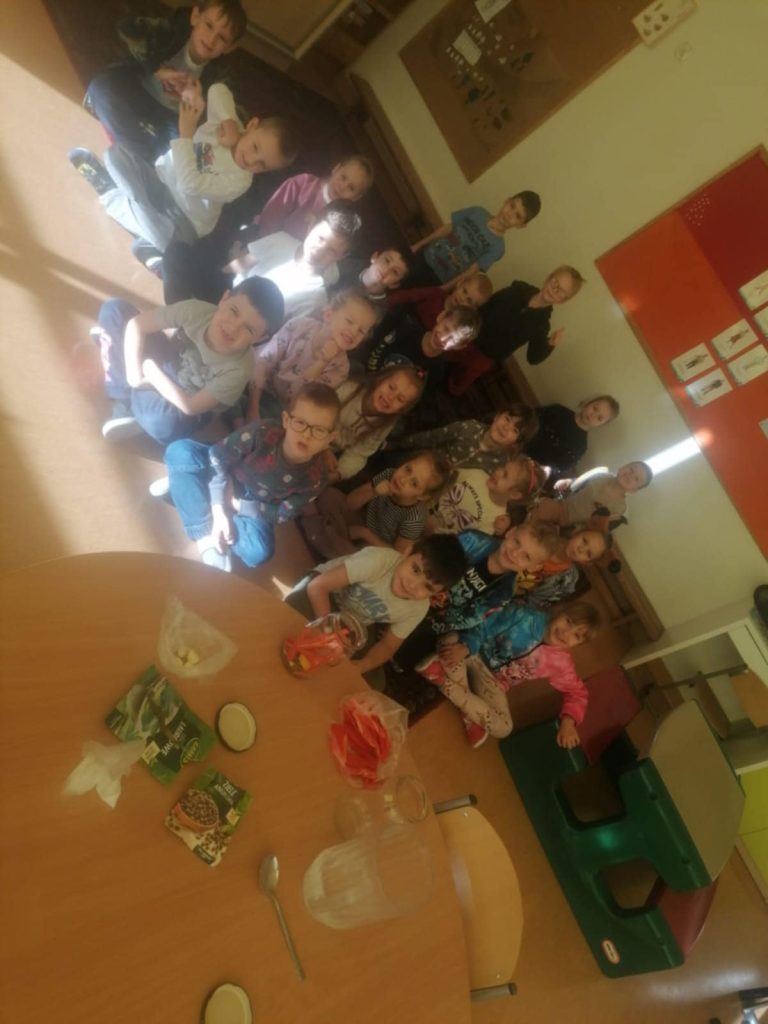 Warsztaty kulinarne w grupie „Pszczłek” i „Żabek”. Dzieci robiły zdrową, pyszną, słodką przekąskę.