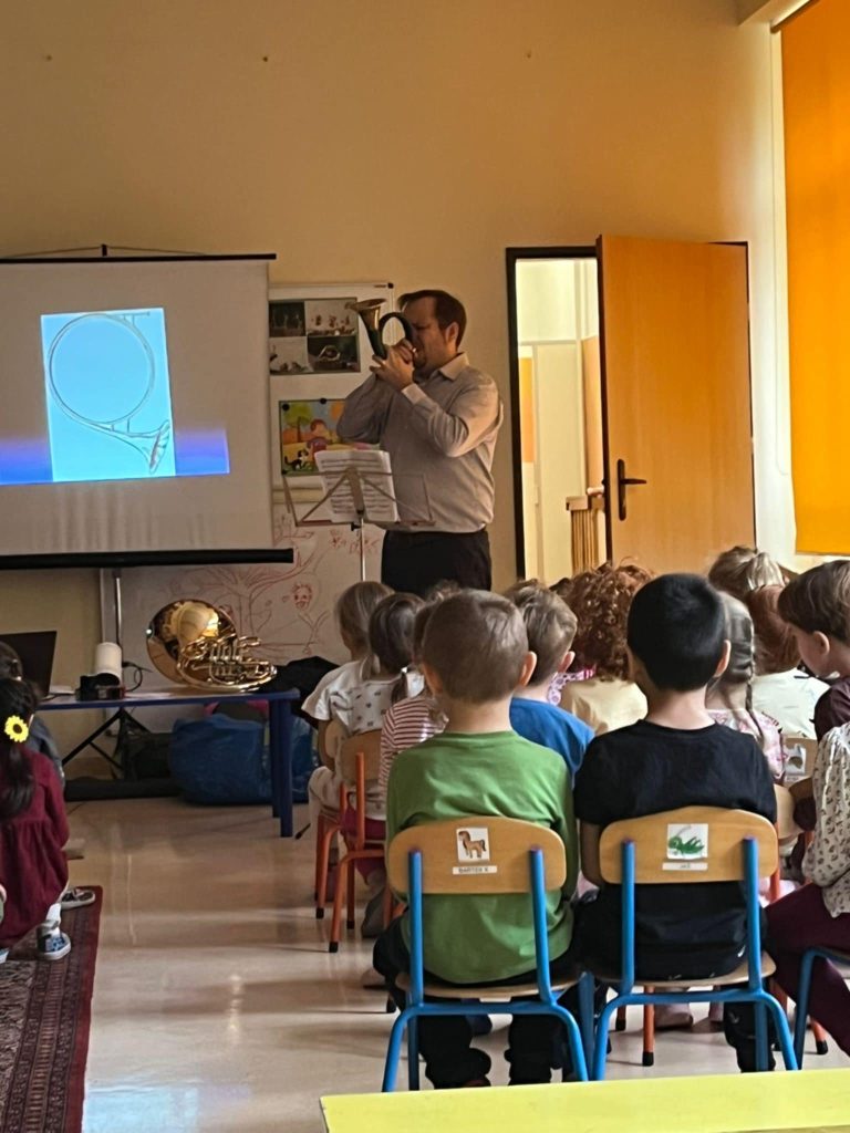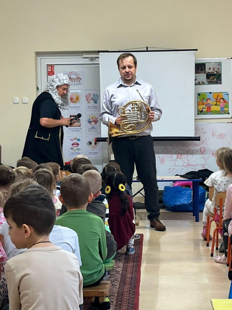 Co miesiąc w naszym przedszkolu mamy przyjemność słuchać koncertw „Dziadka Bacha”, ktry prezentuje nam rżne instrumenty. Odwiedził nas już z trąbką, kontrabasem elektrycznym oraz rogiem.