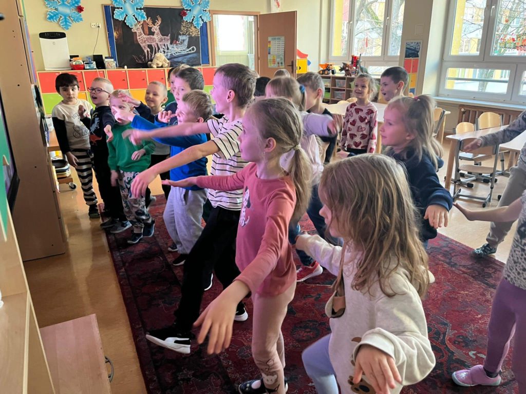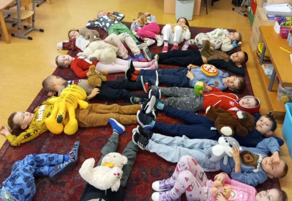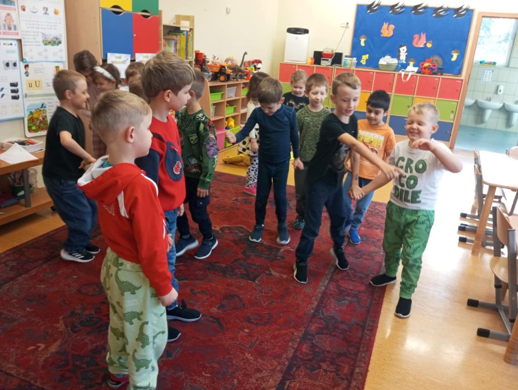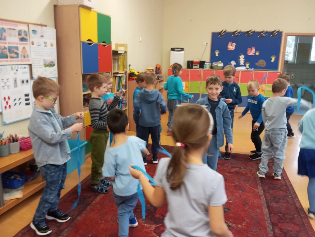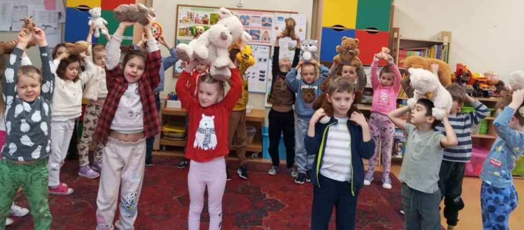 Podczas obchodów nie zabrakło wesołych zabaw, gimnastyki z misiem, ćwiczeń lateralizacji i stosunków przestrzennych oraz relaksujących masażyków. Takie aktywności wspierają rozwój ruchowy, koordynację oraz świadomość własnego ciała, a jednocześnie sprawiają dzieciom wiele radości.