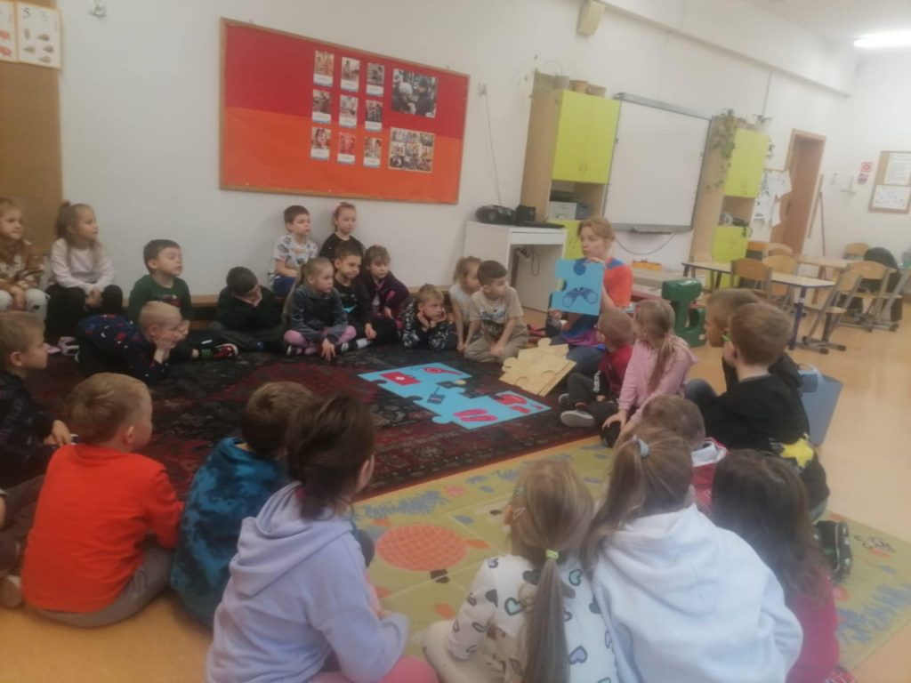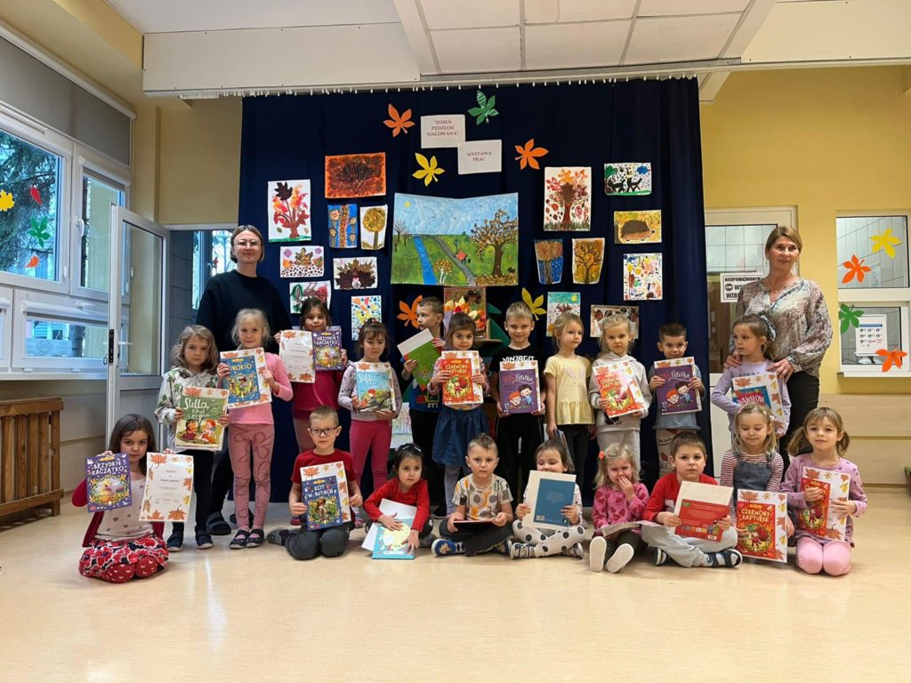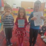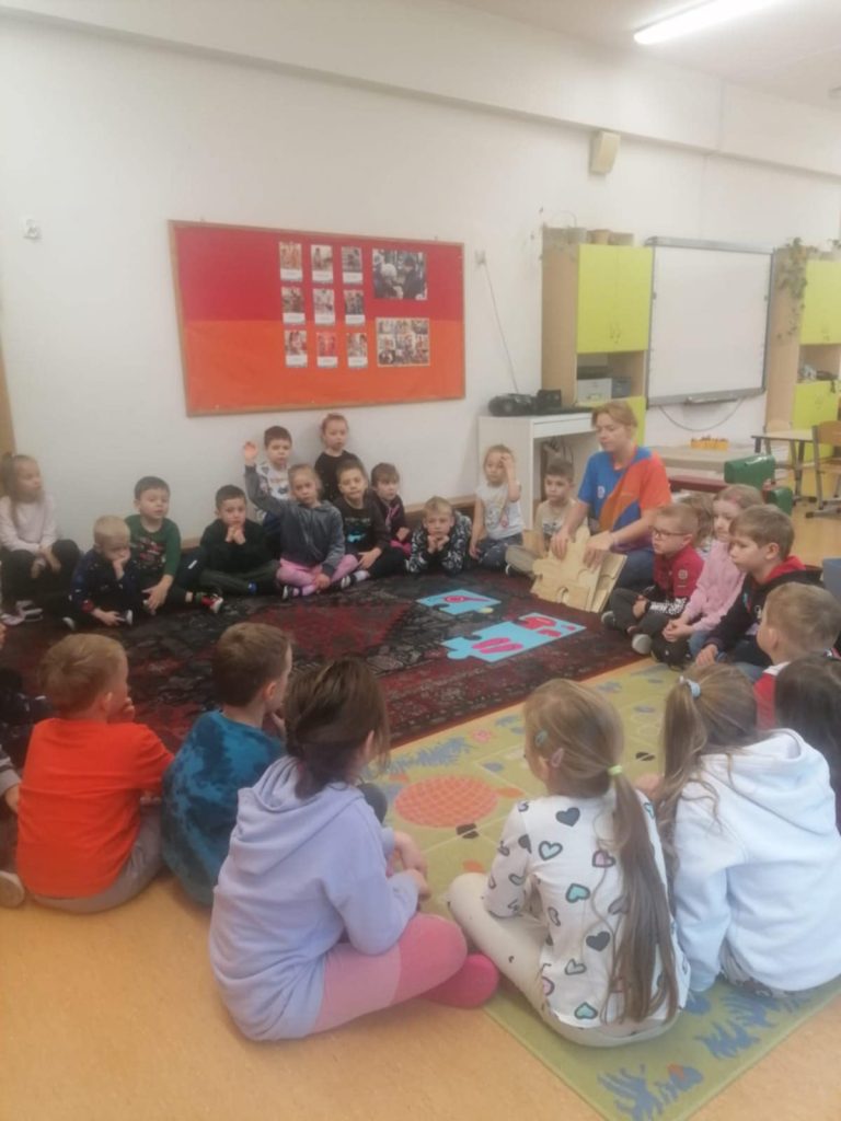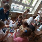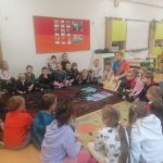 Każdy podzielił się swoją ulubioną książką, opowiadając, dlaczego jest dla niego wyjątkowa. Przy tej okazji grupa poznała pojęcia autor i okładka oraz dowiedziała się, jak powstają książki. ![]()