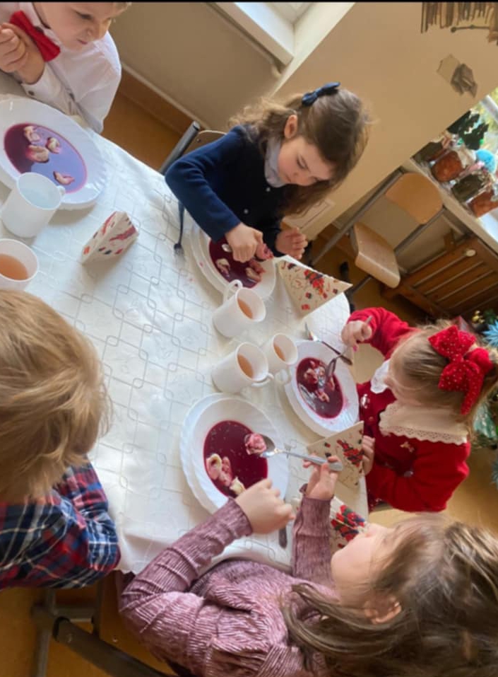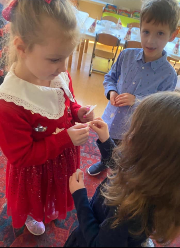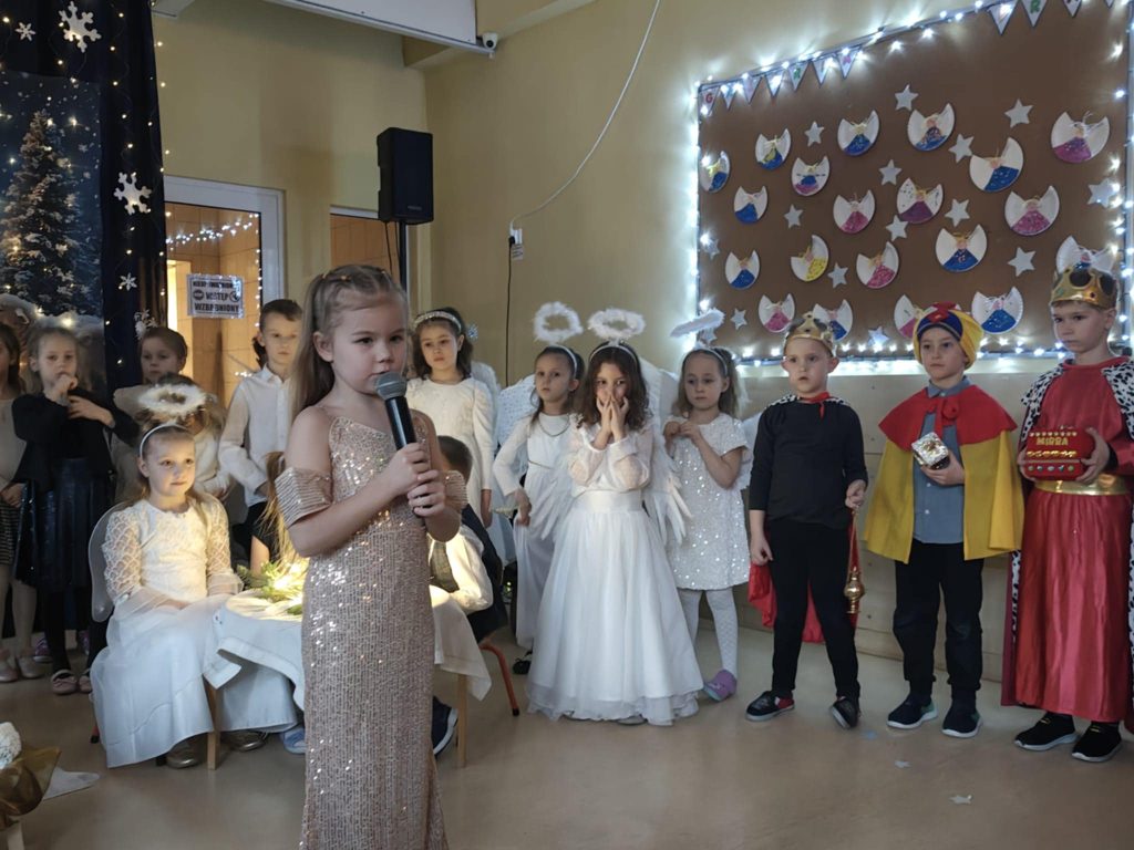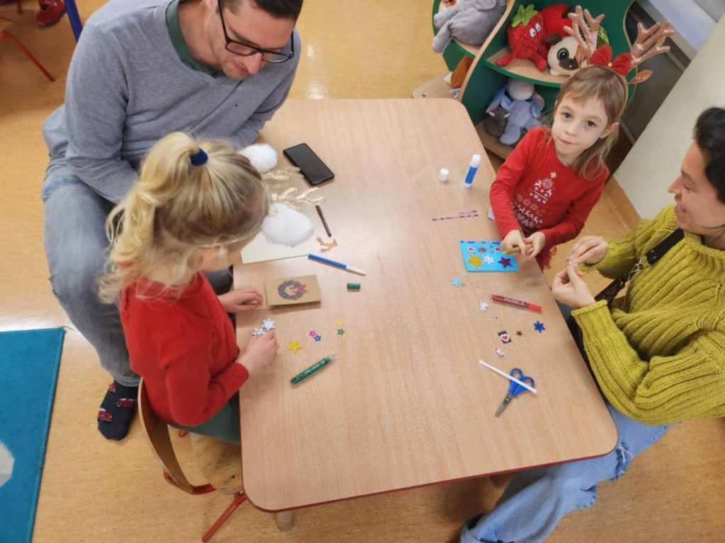 W przedszkolu odbyły się wyjątkowe zajęcia świąteczne, w których aktywnie uczestniczyły dzieci wraz z rodzicami. Wspólnie tworzyliśmy piękne kartki bożonarodzeniowe, rozwijając kreatywność i wyobraźnię najmłodszych. Dzieci przygotowały również krótkie występy artystyczne – śpiewały kolędy, recytowały wierszyki i prezentowały swoje talenty sceniczne, wprowadzając wszystkich w świąteczny nastrój.