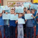 Dzieci z Gr. IV wyszły na pocztę i wysłali wcześniej przygotowane pocztówki do rodziców.