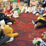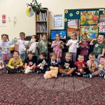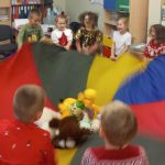 Do przedszkola przyjechał teatrzyk dla dzieci pt. „Perypetie pluszowego misia”.